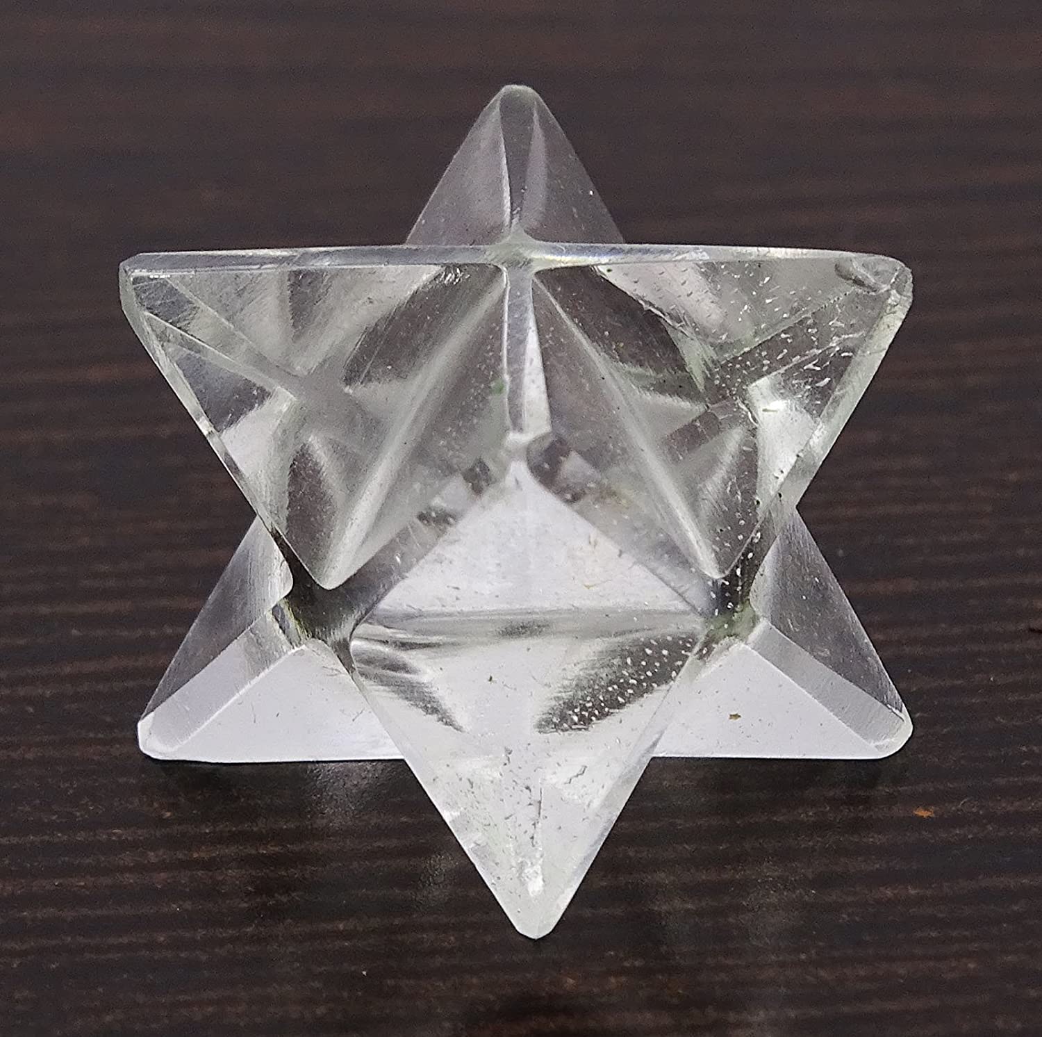 Die Merkaba (Mer = Licht, ka = Geist, ba = Körper) ist das uralte Wissen zur Aktivierung unseres Lichtkörpers. Dieses Wissen findet man in den Überlieferungen vieler Kulturen. Was in den höheren Ebenen seit Anbeginn der Schöpfung als kosmische Merkaba existierte, manifestierte sich auf der Erde als Doppel-Tetraeder. Dieser wunderschöne, formklare geometrische Körper aus Bergkristall ist ein Symbol für Harmonie und Unendlichkeit. Als Meditationsobjekt erleichtert die Merkaba die Verinnerlichung. In Verbindung mit der bedingungslosen Liebe erstrahlt das Herz-Chakra und das Energiefeld leuchtet im Bewusstsein des verwirklichten Menschen.
