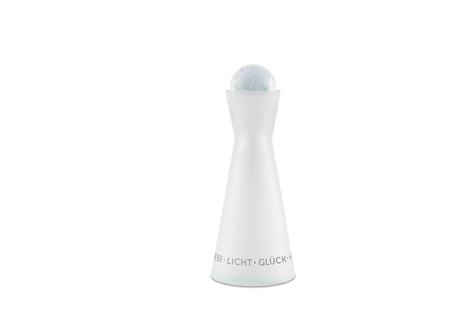 Die Angel's Choice Karaffe by Michaela Merten ist eine wunderbare Inspiration, sich an die Energien unserer Schutzengel zu erinnern. Die stilisierte Engelsform der Karaffe und die positiven, deutschen Affirmationen Gesundheit, Liebe, Licht, Glück und Harmonie verleihen dem Karaffenwasser sozusagen göttliche Energien! Die Proportionen nach dem Goldenen Schnitt strukturieren das Wasser neu und verbessern den Geschmack. Die Angel's Choice Karaffe mit 1,0 Liter Füllmenge ist aus edlem satiniertem Glas handgefertigt und wird mit einer massiven satinierten Glaskugel geliefert. Zusätzlich stehen 5 Edelsteinkugeln zur Auswahl, damit Sie Ihre Angel's Choice Karaffe mit einem hochschwingenden Edelstein krönen können: Bergkristall, Amethyst, Rosenquarz, Obsidian und Aventurin.